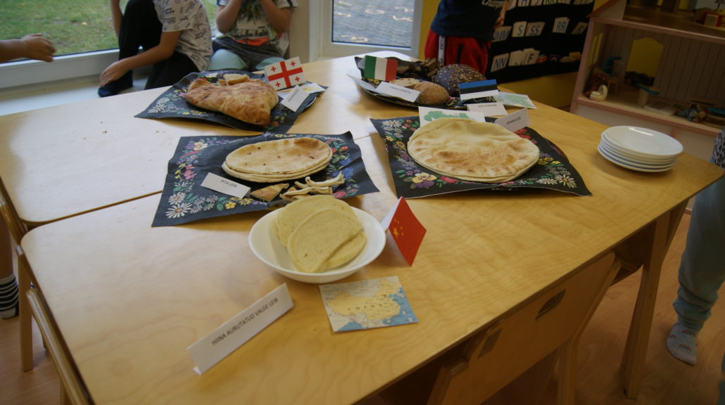 Muumide rühma lapsed degusteerisid leivanädalal erinevate maade leibasid. Lapsed pidid mõistatama, mis maa leib miski on ning paigutama lipud ja kaardid õigesse kohta. Otsisime maade asukoha üles ka suurelt maakaardilt ning vaatlesime ja võrdlesime erinevaid lippe.