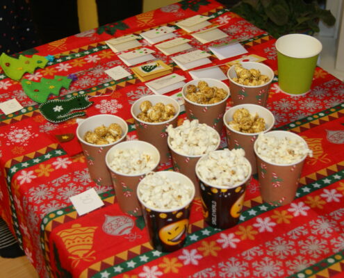 Jõulukuul tegime koostöös lapsevanematega kingituse Tartu Koduta Loomade Varjupaigale. Ühise panusena annetasime näiteks froteerätikuid, kassi- ja koeratoitu, kassiliiva ja koristustarbeid, koerte jalutusrihma. Loore joonistas ja kirjutas kaardi. Varjupaiga töötajatele kinkisime piparkoogi- ja kommipaki.