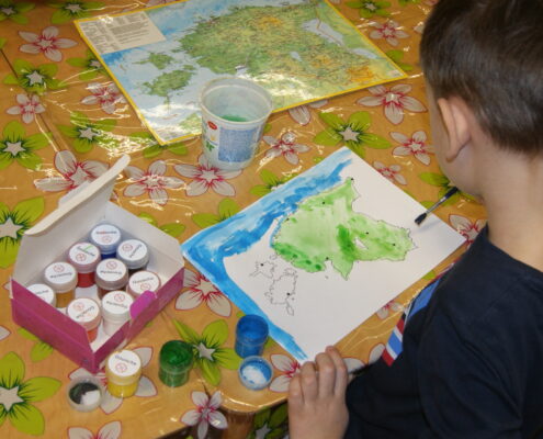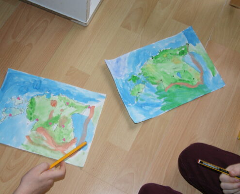 Jaanuarikuu pikad rännakud teistes maades tõid meid tagasi kodumaale. Muumid õppisid tundma Eesti kaarti. Selleks maalis iga laps endale kaardi ning vanemad lapsed märkisid peale ka suuremad linnad, järved, mered ja naaberriigid.