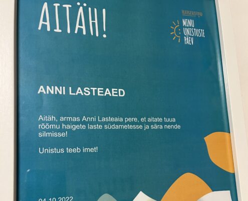 4. oktoobril kohtusime Minu Unistuste Päev Tartu esindaja Kertti-Airin Pärliga, et anda üle kogutud annetus (vt ka Minu Unistuste Päev FB postitust). Kertti-Airin rääkis lastele sellest, millega fond tegeleb ning kellele lasteaia poolt kogutud raha läheb, lisaks veel unistustest ja unistamisest ning andis üle fondipoolsed tänusõnad.
