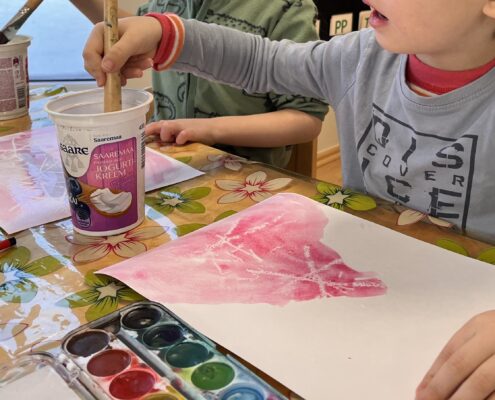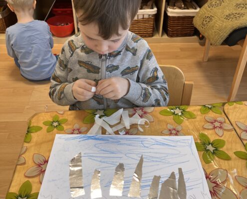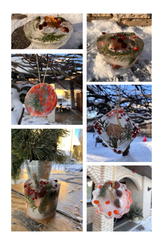 Tegime erinevaid temaatilisi kunstitöid, näiteks maalisime jäälilli ning rebisime ja kleepisime jääpurikaid.