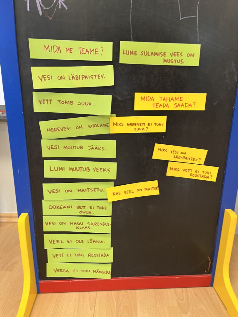Arutlesime lastega teemal, mis värvi on vesi. Maalisime veega erinevatele pindadele ja uurisime, mis juhtub.