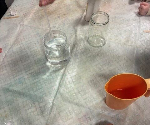 Lapsed teadsid, et lumi muutub tuppa tuues veeks. Katse jaoks panime purgi lund täis ning märkisime markeriga ära, kuhu maani lumi ulatub. Lapsed märkisid selle ka oma töölehele ja ennustasid ning märkisid, kui palju võiks purgis olla vett, kui lumi on ära sulanud. Ainult ühe lapse ennustus läks täppi.