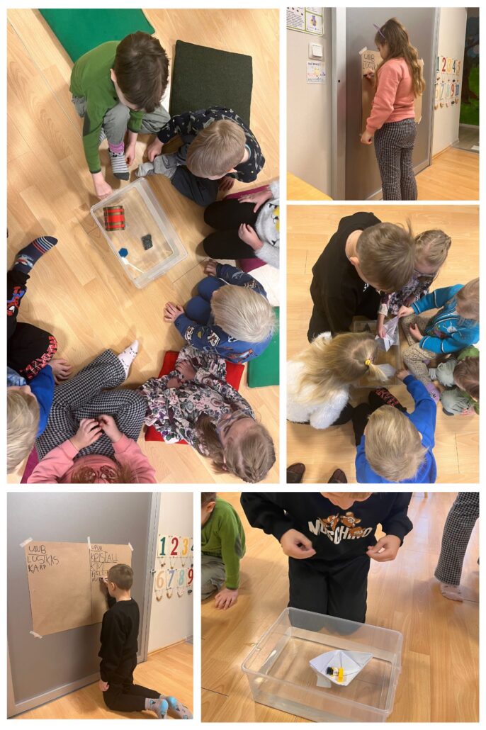 Pätude rühma lapsed katsetasid kaussi pandud vees erinevaid esemeid ja said teada, milline ese ujub vee pinnal ja milline vajub vee põhja. Katse tegi huvitavamaks ka see, et vanemad lapsed voltisid enne katse tegemist paberist laevukesed ja nende ujutamine tegi palju rõõmu.