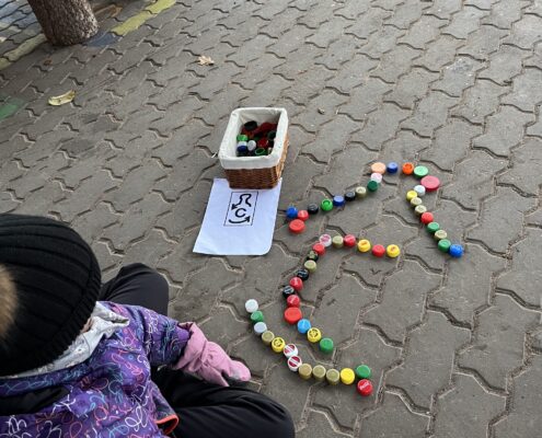 Vanemad lapsed ladusid pudelikorkidest pandipakendi märgi. Eelnevatel päevadel olime vaadelnud pudeleid ja rääkinud, mida erinevad tähed märgil tähistavad.