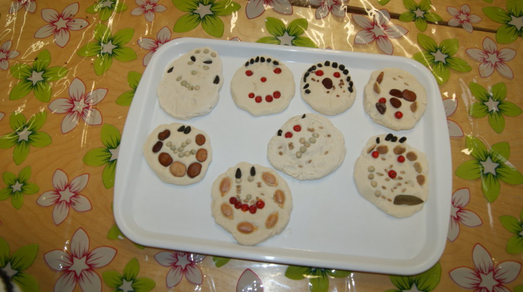 Lapsed said ka ise taignast pätsikesi voolida. Valmistasime soolataigent, mida lapsed loovalt seemnete ja marjadega kaunistasid.