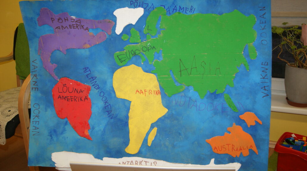 Jaanuarikuu tegevused ja mängud pühendasime maailma avastamisele. Nii valmis ühe tegevusena Muumide rühma ühistööna maailmakaart. Vaatlesime ja uurisime, maalisime, kleepisime, häälisime, lugesime, kirjutasime ja tegime koostööd.