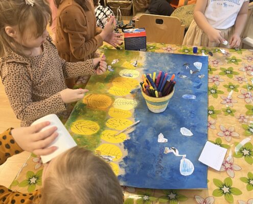 Uurisime Muumide rühma lastega lindude rännet, täpsemalt, kuhu nad talvituma lähevad, mis maad ja riigid on nende sihtkohaks, missuguseid maid nad oma teel läbivad, keda nad oma teel võivad kohata ning missugused ohud neid varitsevad. Loovmänguna mängisime näiteks läbi sookure rännutee. Lindude ja nende rände teema kajastus keele ja kõne, matemaatika, muusika, liikumise, kunsti ning mina ja keskkonna tegevustes.