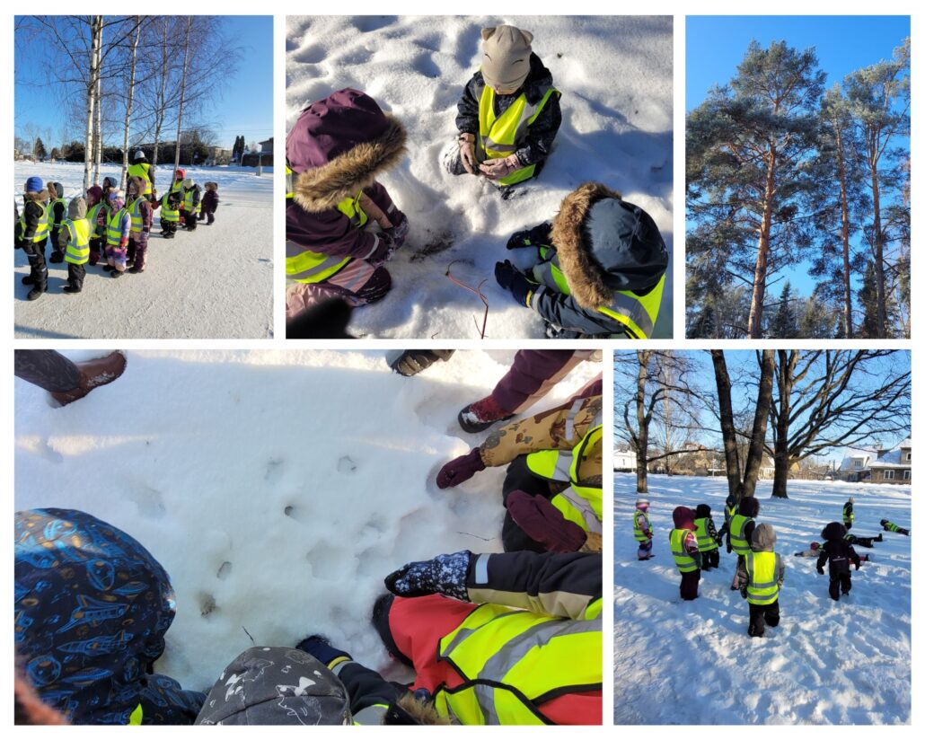 Käisime lastega Raja pargis talvist loodust vaatlemas. Lapsed märkasid lumel erinevaid jälgi. Arvati, et need on koera, jänese või orava jäljed, ka suusajälgi oli pargis näha. Kuulamisharjutuses panid lapsed tähele, et ka linnud on juba laulma hakanud. Linnulaulu järgi tunti ära, et see lind on rasvatihane. Veel märkasid lapsed orava tegutsemise jälgi – kuuskede juures maas olid äranäritud kuusekäbid. Lapsed said keksida külma peletamiseks nagu oravad ja päikese käes panid nad tähele, et see soojendab juba päris hästi.