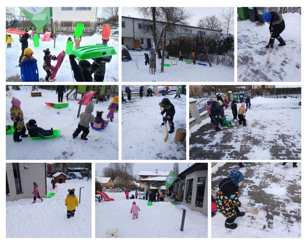 Spordipäev algas hommikul hommikuvõimlemisega toas. Pärast seda mindi õue, kus toimus paarides kelguga aiaäärse raja sisse vedamine. Paarilised vahetusid. Hiljem toimus jääkuulide otsimine ning võistlusmängud jääkuulide veeretamises hokikeppidega. Toas toimus diplomite ja õuntega väikeste sportlaste autasustamine.