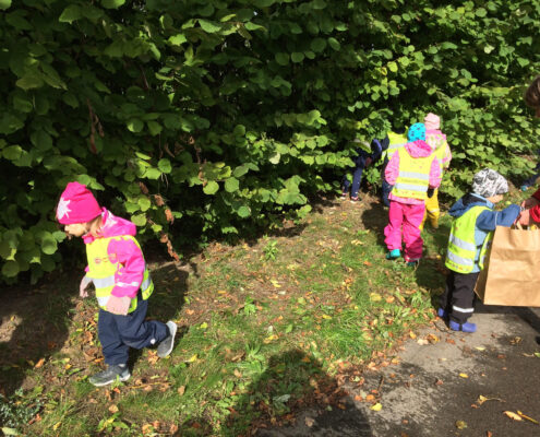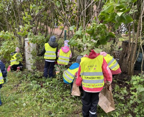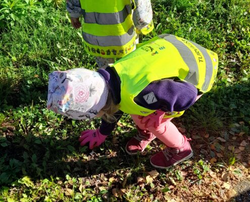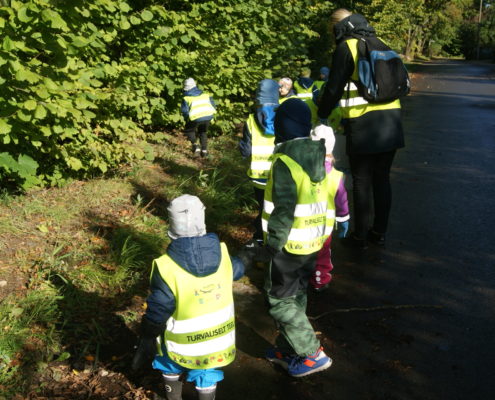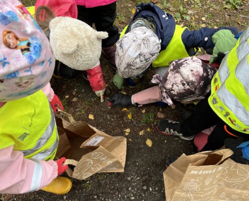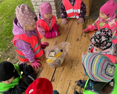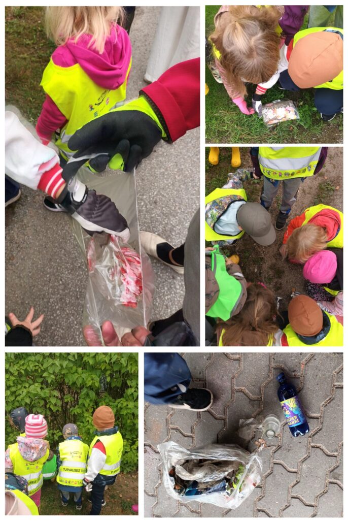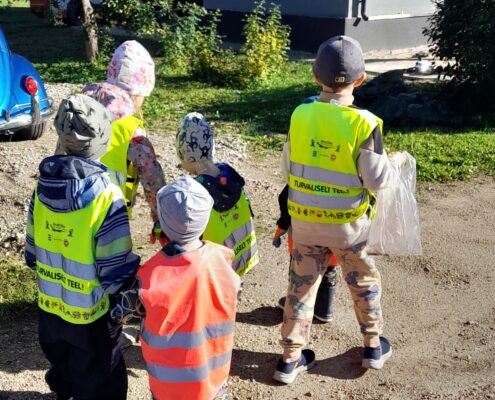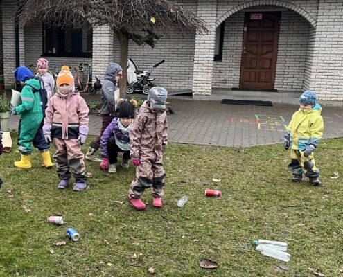Käisime lasteaia ümbrust koristamas kogu lasteaiaga, jalutuskäigul osalesid ka 2-aastased lapsed.