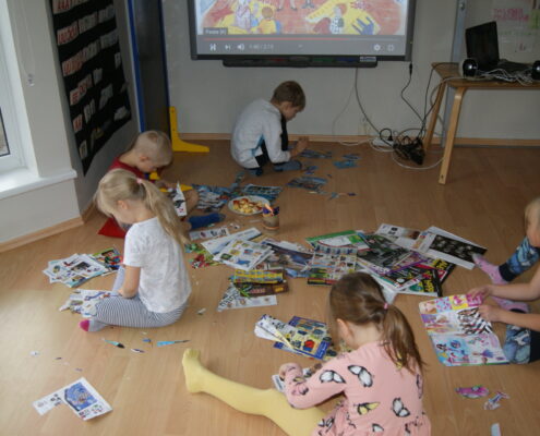 Lapsed said ülesandeks võtta lasteaeda kaasa raamat, mis neile meeldis ja mida nad on valmis kellelegi teisele edasi andma. Rääkisime, millest ja kuidas paberit valmistatakse ja vaatasime vastavasisulist videot. Arutlesime, kuidas saame ise igapäevaselt paberit kokku hoida. Lapsed voltisid ja joonistasid oma miniraamatud, mida samuti üksteisega vahetati.