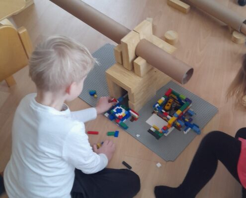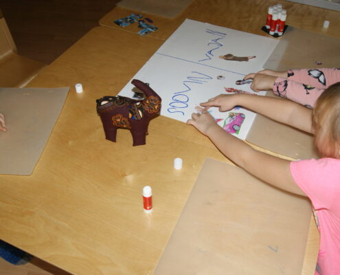 Novembris otsustas Rohelise kooli töörühm hakata koguma pakendeid muust prügist eraldi. Niisiis oli meil kogunenud juba hulk piimapakke, millest ostustasime Muumide rühma lastega meisterdada nukud. Kunstitegevuse eesmärk oli õppida umbsõlme sidumist, mis lastel tegevuse lõpuks tuli juba päris hästi välja. Iga laps sai ise otsustada, mis nuku ta teeb ja ise näo kujundada. Nii valmisid meil kassid, öökullid, tihased, ükssarvkass, koer. Lastele meeldisid nukud väga. Kohe kui nukud valmis said, hakkasid nad nendega mängima.