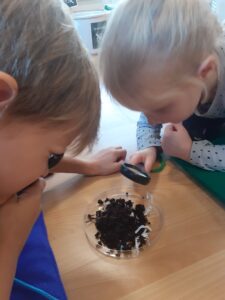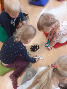 Osalesime Tartu Loodusmaja õppeprogrammis “Vähem prügi” KIK keskkonnateadlikkuse programmi toel. Lapsed tutvusid jäätmete liigiti kogumisega: ohtlikud jäätmed, olmejäätmed, biojäätmed, paber ja papp, pakendid. Lapsed said teada, mida kuhugi sobib panna ning leida erinevatele jäätmetele õige ämbri. Lisaks said lapsed tutvuda kompostriussidega, koos peenestatud paberi ja mullaga. Lapsed said teada, kuidas muld tekib ning miks on selleks vaja vihmausse. Seejärel said lapsed luupidega kompostiusse ja mulda uurida.