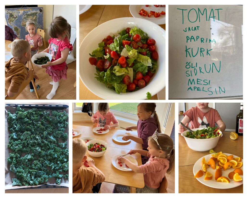 Korraldasime lasteaias taimetoidu päeva, paludes toitlustajal selleks päevaks panna kokku vastav menüü. Lisaks valmistasime ise lastega taimetoitu, rääkisime selle kasulikkusest ja loomakasvatuse mõjust keskkonnale. Pätude rühma lapsed valmistasid lehtkapsa krõpse ja Muumide rühma lapsed köögiviljadest värvilise salati.